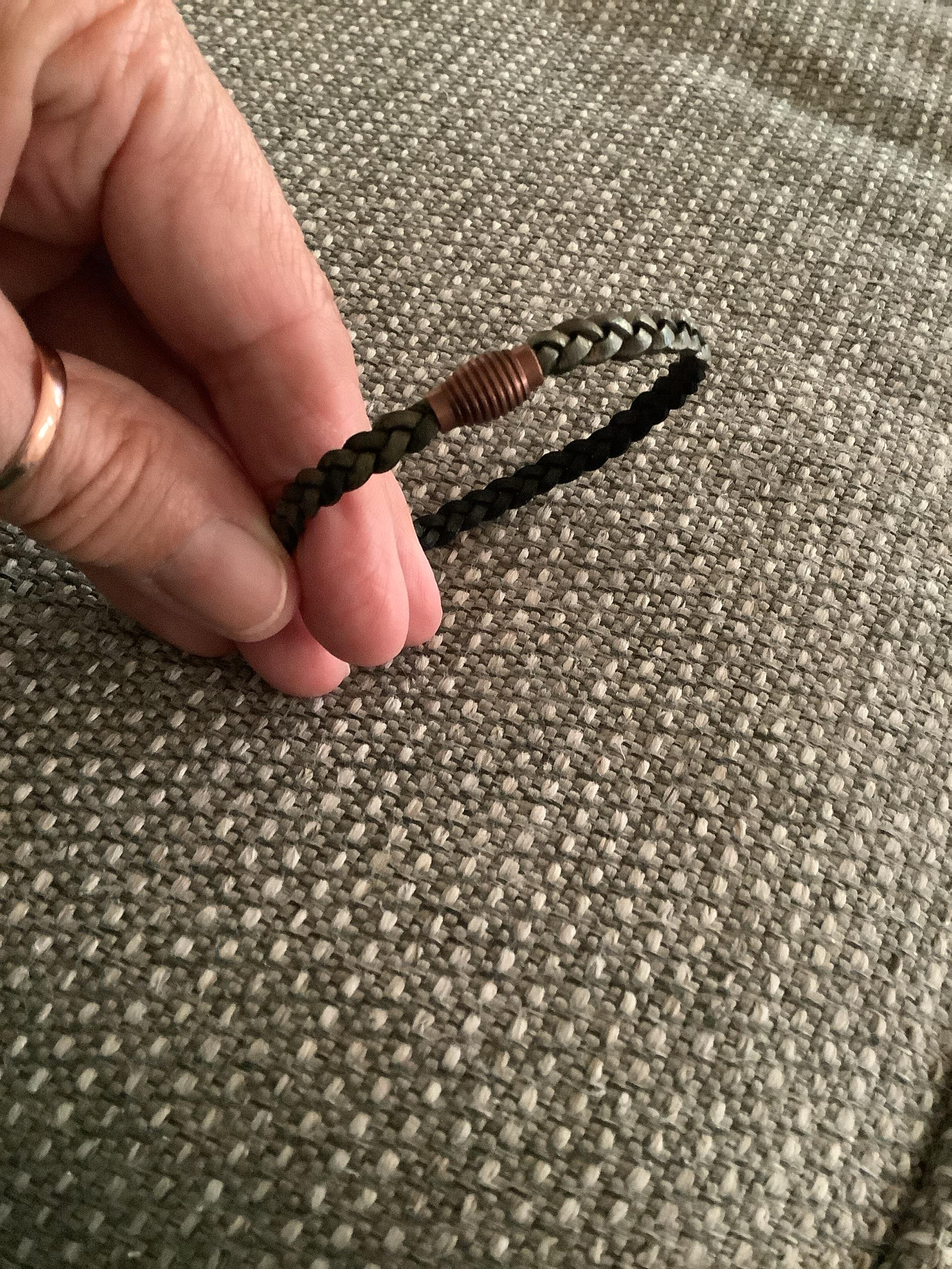 Made from 5mm flat braided leather and an attractive copper color clasp.